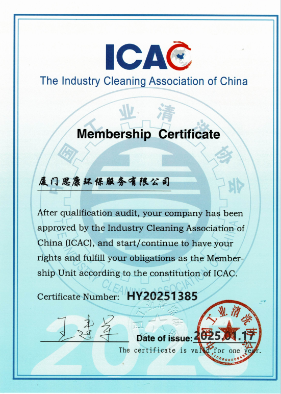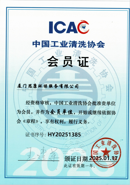 中國(guó)工業(yè)清洗協(xié)會(huì)會(huì)員證2