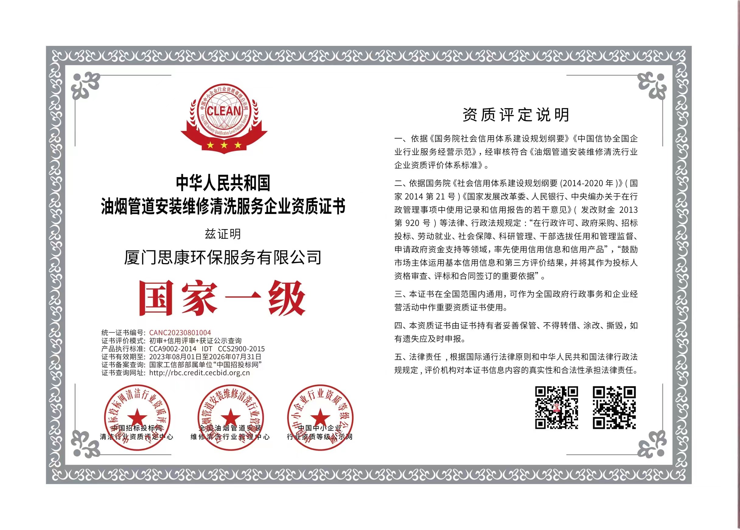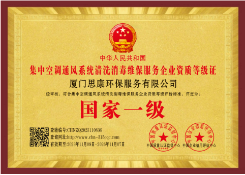集中空調(diào)通風(fēng)系統(tǒng)清洗消毒維保服務(wù)企業(yè)資質(zhì)證書