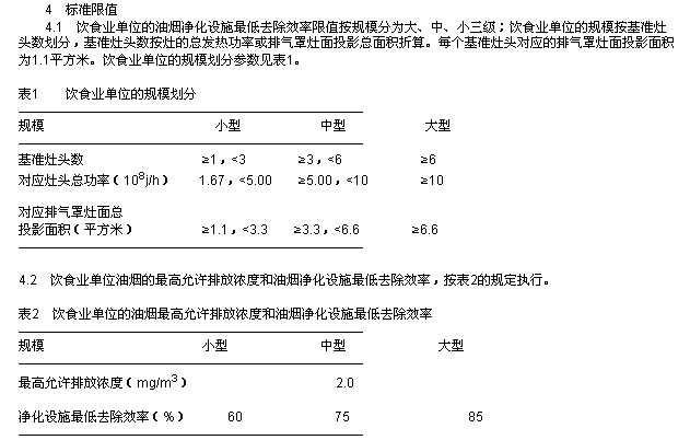 本標(biāo)準(zhǔn)規(guī)定了飲食業(yè)單位油煙的最高允許排放濃度和油煙凈化設(shè)施的最低去除效率。